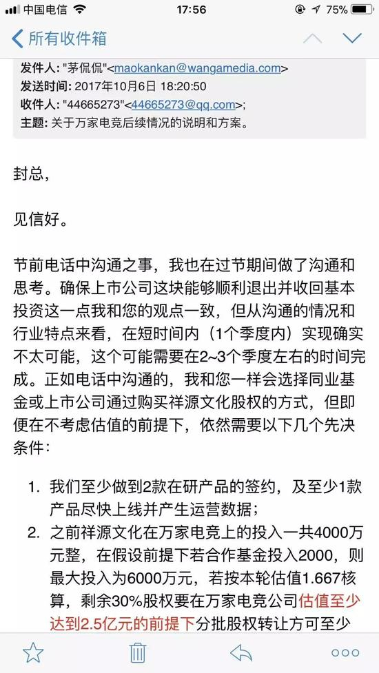 赵薇借壳失败可能间接影响到融资,但万家电竞后续仍希望接洽新的资方。茅侃侃告诉每日经济新闻记者,由于融资进展尚需时间,祥源文化希望以1元作价将部分股权转让给他。“上市公司这么明确表示对万家电竞的‘嫌弃’,投资方作何感想?”他认为,更换实控人后上市公司对万家电竞一味想要剥离,直接影响到了潜在资方的信心。