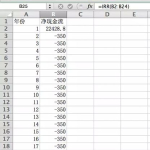 在excel中一次将23的数字依次输入,并计算内部收益率,也就是IRR=3.28%