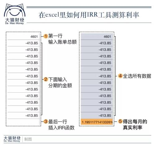 ●但真实利率是什么呢?用IRR工具测算下就知道,这个工具电脑的excel表格就有: