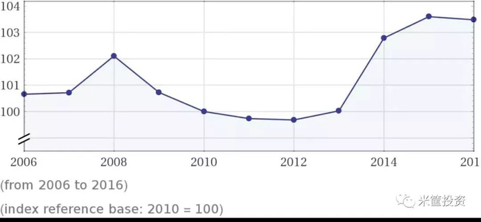 ▲近十年,日本物价几乎没涨,甚至在2012年前后一度下跌