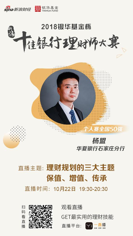 2018年银华基金杯新浪十佳银行理财师大赛由新浪财经和银华基金共同举办,致力于为广大银行理财师及所在机构提供展示形象、提升品牌价值的舞台,选拔并表彰符合市场需求的优秀理财师。