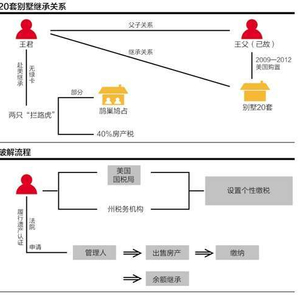 “我在接触时了解到,因为这些房屋空置了很久,拖欠了房产税,有的已经被拍卖了。其次,要继承财产还有高达40%的遗产税。由于王君和其父亲均不是美国公民或者持有美国绿卡,因此并不能享受较高免税额。” 大成律师事务所王芳家族办公室律师冯骜在接受21世纪经济报道记者采访时表示。