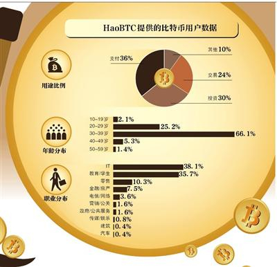 据国内交易平台HaoBTC给新京报提供的用户相关数据显示,交易比例在比特币主要用途上占据24%,投资比例达到30%,而支付占据36%。