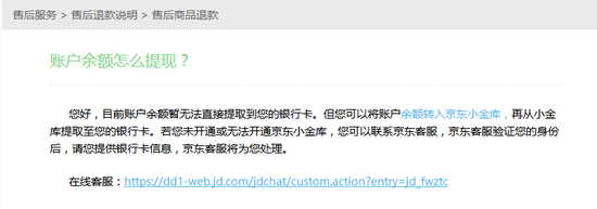 事实上,京东方面否认强制用户下载也并非没有道理。京东在其帮助中心的售后商品退款中解释,若客户未开通或无法开通京东小金库,可以联系京东客服,京东客服验证身份后,客户提供银行卡信息,京东将处理。