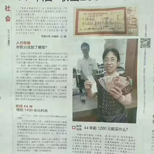 报道称,厦门一女子44年前(1973年)存入银行1200元,历经44年,得到1484.04元利息,如今取出2684.04元。