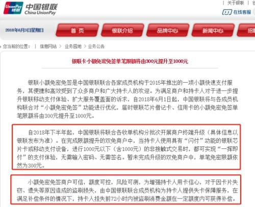 银联卡免密支付由300提到1000元 为何大家反而担心