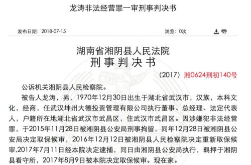 最终,湖南省湘阴县人民法院一审判决被告人龙涛犯非法经营罪,判处有期徒刑三年,缓刑四年,并处罚金人民币1305万元。此外,没收联想电脑主机一台、黑色笔记本电脑一台,上缴国库。