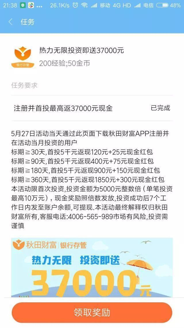 而微博名为JIA蔡的网友,算是幸运的例外。他在元旦前后,在小米6手机的“我的小米”的“未领奖励”模块中,看到理财广告,其中一个,投资5万三个月可获得小米mix2一部,让JIA蔡十分动心。但这位某大型股份制商业银行的客户经理,还是去认真复盘了一下,结果发现上述P2P平台并不靠谱。