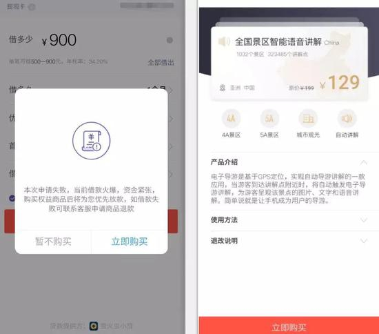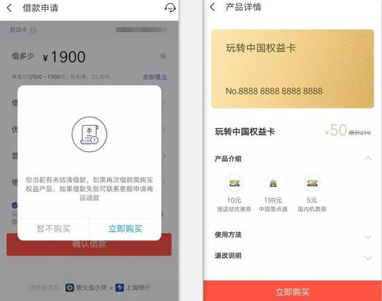 据了解,这样的现场并未个例,不少用户需要购买“玩转中国权益卡”或“景区语音讲解卡”用以增信,方可申请借款。