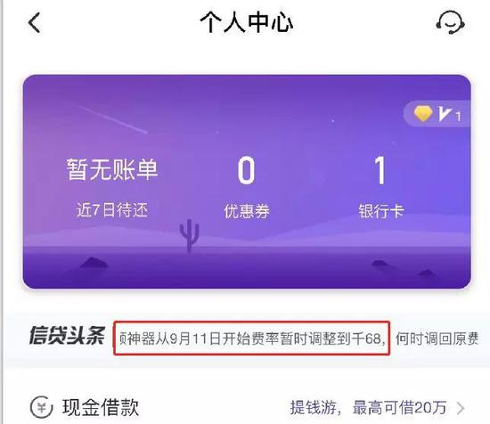 在同程金服的信贷头条中发现,同程金服表示,因监管政策,“提额神器”从9月11日开始费率暂时调整为千68,即0.68%。
