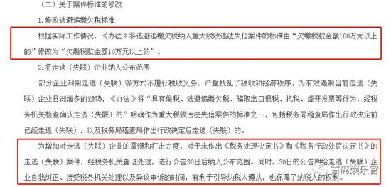 据悉,《办法》修改了逃避追缴欠税标准,由“欠缴税款金额100万元以上的”修改为“欠缴税款金额10万元以上的”。