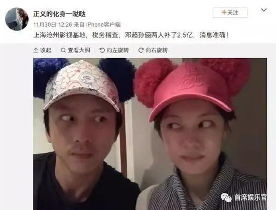 “17名艺人被约谈”后,名单也随之曝光,其中邓超、孙俪夫妇赫然在列,据传两人已经补缴了2.5亿元人民币。此外,黄晓明&Angelababy(杨颖)夫妇、陈思成&佟丽娅夫妇、汪峰&章子怡夫妇、吴亦凡、杨幂、迪丽热巴、鹿晗、黄渤、吴京、徐峥、赵薇、赵丽颖都在约谈名单中。目前,艺人工作室还未对其进行否认。