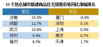 分城市看,厦门、深圳、上海、南京、泉州、天津、温州、北京、惠州、合肥十个城市的新建商品住宅价格排名后十位。