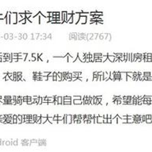 3)基金投资可以开始探索:固收类产品的好处在于所见即所得,但也有局限,就是没有太多上升空间,可以转移小部分资金尝试基金定投,获得更好的收益,直接去逛基金组的技能话题吧,许多干货~