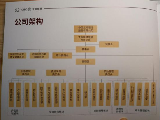 从公司架构来看,工银理财是工商银行的全资子公司,下设董事会、监事会、审计委员会、战略与提名薪酬委员会、风险控制与关联交易委员会。