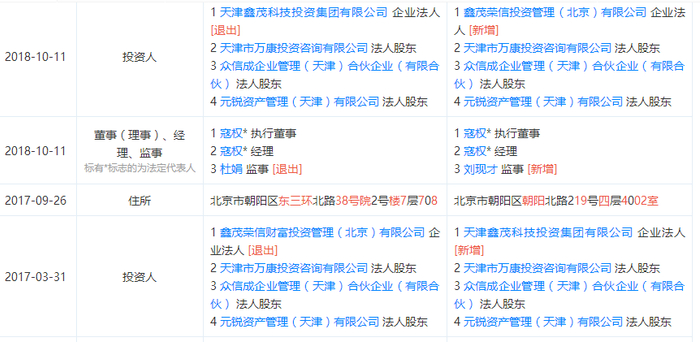在2018年10月,邦帮堂的工商信息进行了一轮变更,鑫茂集团退出股东名单,同时作为邦帮堂监事的杜娟也退出平台高管名单。在此前2017年的股东变更中,鑫茂荣信财富退出鑫茂集团加入邦帮堂股东名单。