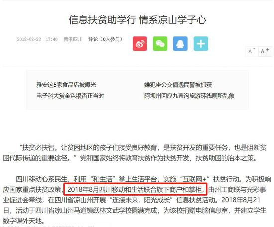 而在《信息扶贫助学行 情系凉山学子心》公益活动中,再次将和掌柜归于四川移动和生活旗下。