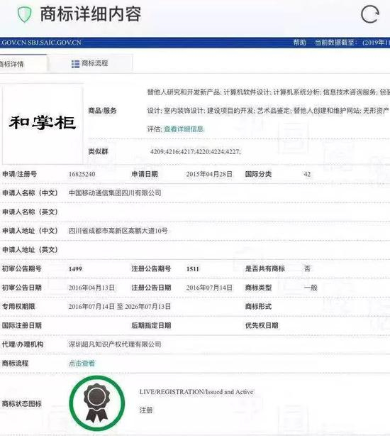 四川移动旗下还有一款APP,为“四川移动和生活”,从名称来看,好像属于同一个系列。查询可知,和掌柜的商标,也是由中国移动四川分公司申请。