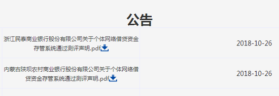 2018年10月26日,全国互联网金融登记披露服务平台正式对外公布,陕坝农商行通过网络借贷资金存管系统通过测评声明,被纳入银行存管白名单。