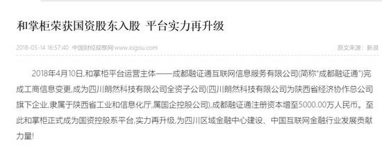 在成都融证通官方宣传中,朗然科技是陕西省经济协作总公司旗下企业,隶属于陕西省工业和信息化厅,属国企控股公司。朗然科技入股后,成都融证通注册资本增至5000万元,和掌柜也正式成为国资控股系平台。