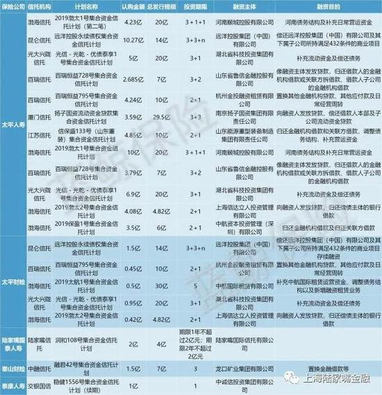 太平财险在近3个月时间内认购5项信托计划,认购金额较太平人寿明显偏低,合计约3亿元;此外,陆家嘴国泰人寿、泰山财险与泰康人寿,也分别推进认购集合资金信托计划的动作。