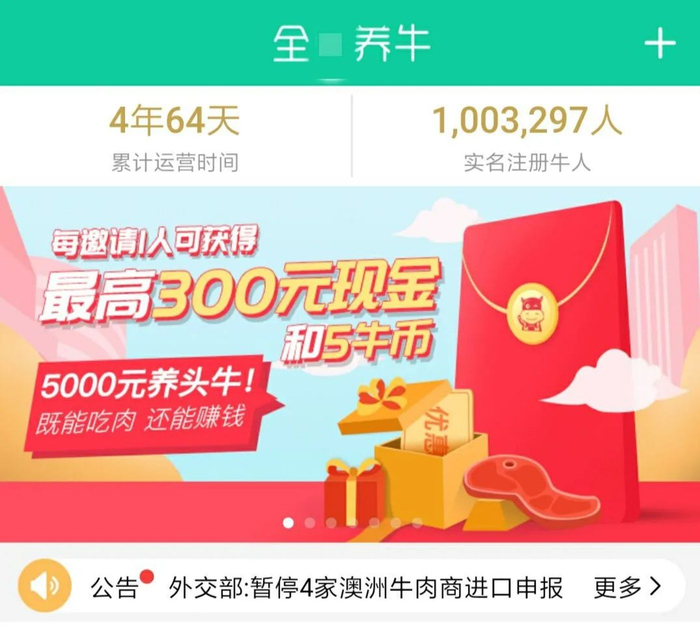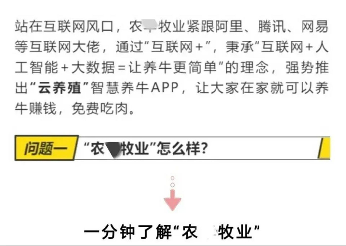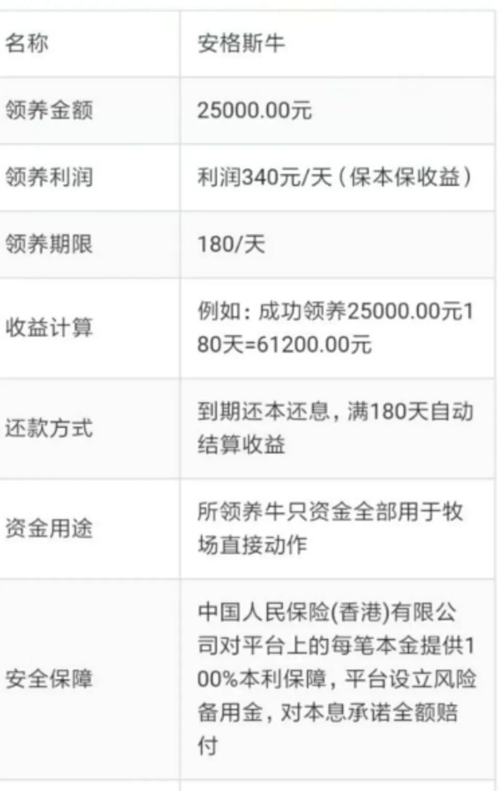 说到这儿,我们大概猜到这是一个什么项目了——一个精心包装成云养牛,实际上是P2P模式、非法集资的庞氏骗局。