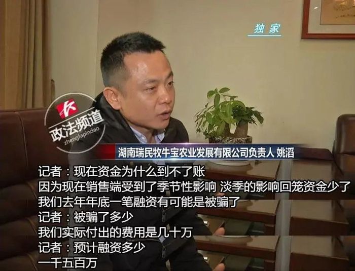 比如去年三月,政法频道报道了倒霉的许女士和湖南瑞民牧牛宝农业发展有限公司的纠葛。瑞民对外宣称“互联网+共享联合养牛”的企业,投资者不仅可以认领该公司旗下的活牛,还能从事活牛及牛肉制品交易。