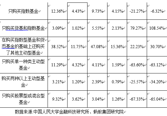 在基金产品配置结构上,只购买风险较大的主动型基金的人数占比大幅度下降,一方面说明所有人群的安全意识有所增强,另一方面也意味着用户合理配置理财产品的能力正在不断提升。
