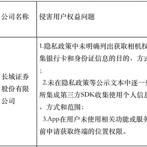 近日,广东信管局公示一批隐私侵权应用,均为主体注册在省内企业,不乏金融类APP。长城证券(002939.SZ)旗下的应用长城炼金术被指存在侵害用户权益问题,