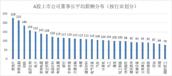 而综合、采掘、国防军工的董事长们的收入则普遍较低,尤其是国防军工的董事长平均税前报酬仅为79万,远低于A股平均水平。