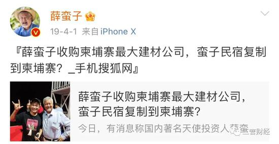 有消息称,2019年4月,蛮子基金在柬埔寨当地宣布将联合柬埔寨自由女神像集团成立专注柬埔寨市场的天使投资基金——中柬蛮子基金,并且由薛蛮子携手团队亲自操刀。