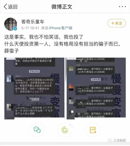 不过最近三言财经发现,又有投资者向薛蛮子讨债。