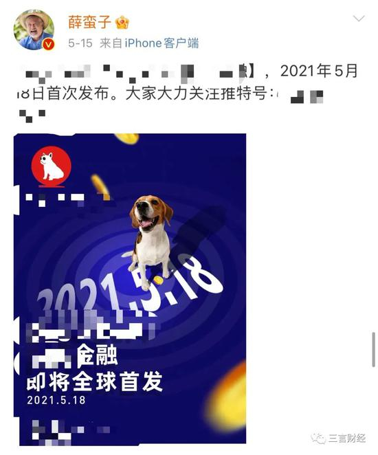仅仅4天后,薛蛮子又宣布5月18日将推出另一款币“狗X金融”。