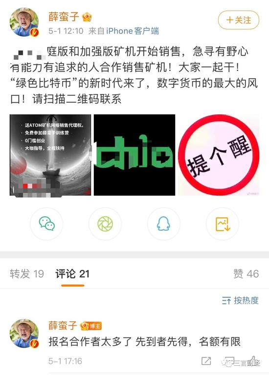 而我们回头再看看薛蛮子的这些操作,有项目了就在微博里喊喊单,吸引一波粉丝“充值”,项目不行了就调转方向到下一个。