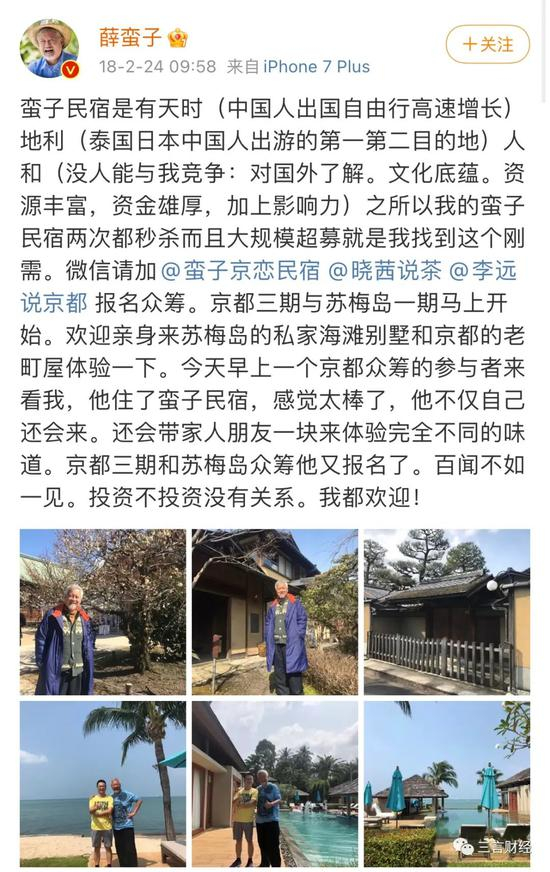此外,薛蛮子做民宿、房产不都是用自己的钱,有不少个人投资者参与。