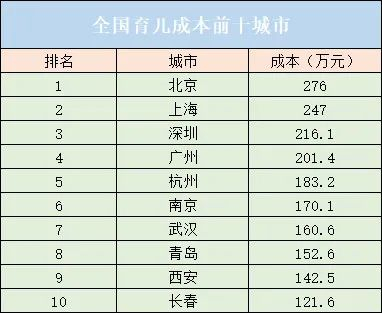 3年前网上流传的一份国内十大城市育儿成本数据显示:北上广深等一线城市的养孩成本高达200万元以上。
