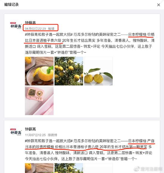 不过,在查证的时候,有发现了点看不太明白的信息,疑惑又多了一些。具体而言,就是我在钟薛高官博,翻到2018年宣推这款66块雪糕时的微博,突然发现标注着“已编辑”,好奇心起,点进去看,发现2018年11月发的微博,不晓得为何要在时隔2年半之后的2021年,也就是近年4月又进行了编辑修改,详情如下: