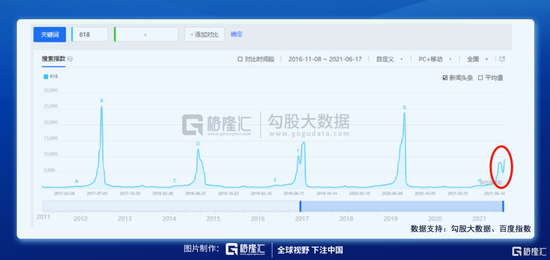百度指数上搜索关键词“618”,关注度明显不及此前几年。