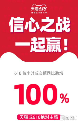 虽然,增长数据看着还不错,6月18日凌晨第1小时,天猫618成交额同比增长100%。