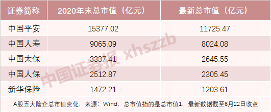 截至6月22日收盘,五大险企A股总市值合计为25904.16亿元,较去年12月31日的31764.61亿元缩水5860.45亿元,相当于跌去近五分之一的市值。