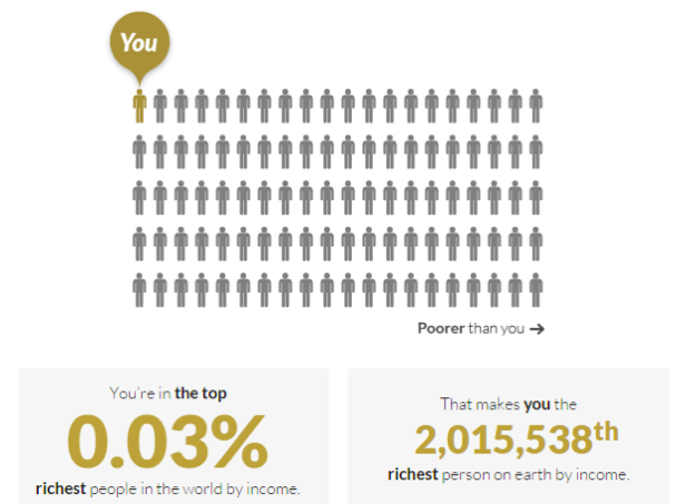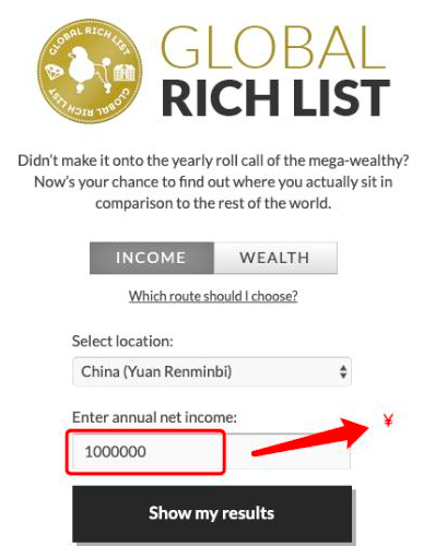 不信,我给你安利一个网站Globalrichlist,输入你的国家和年可支配收入后,就可以清晰看到自己的世界财富排名。