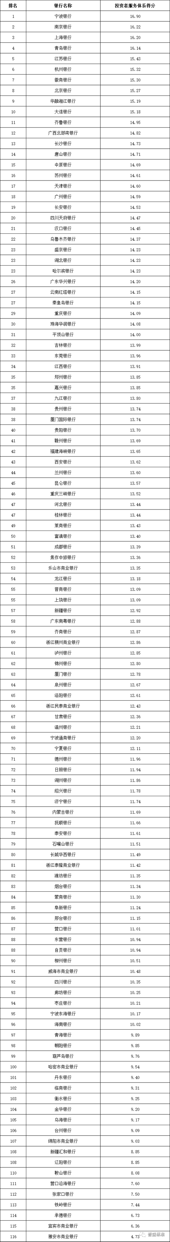 城市商业银行排名前十的依次为宁波银行、南京银行、上海银行、青岛银行、江苏银行、杭州银行、徽商银行、北京银行、华融湘江银行和大连银行;
