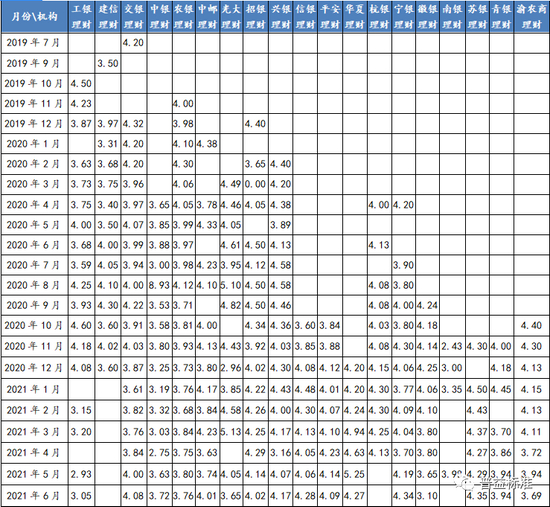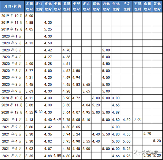 表 11:2019年6月至2021年6月理财子公司新发混合类定开型产品平均业绩比较基准(单位:%)