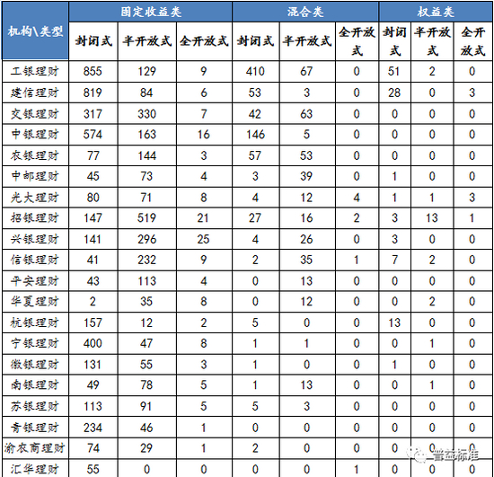 考虑到不同类型理财产品配置上的差异,以及产品量的情况,本文将分别对理财子公司固收类和混合类封闭式和定开型产品的业绩比较基准进行分析。