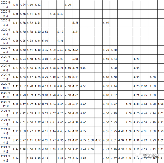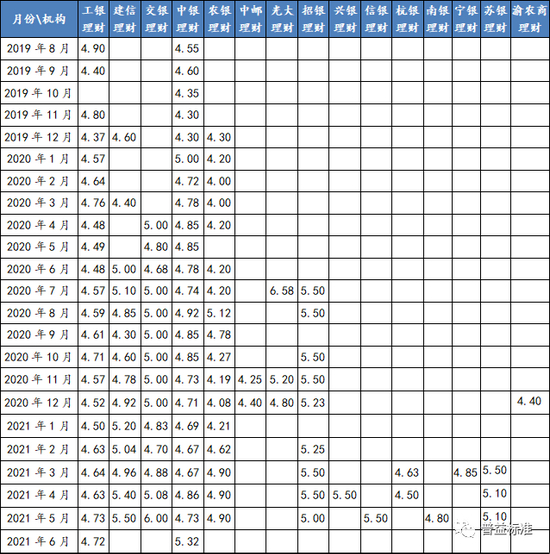 表 9:2019年6月至2021年6月理财子公司新发固收定开型产品平均业绩比较基准(单位:%)
