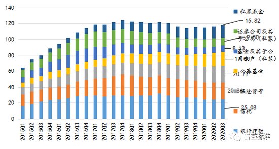图2:各类资管产品产品余额变化(单位:万亿元)