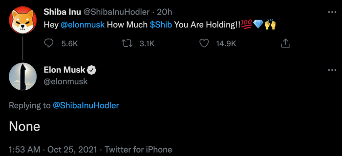 此外,当地时间周日,特斯拉CEO埃隆马斯克在社交平台回应网友“ShibaInuHodler”消息,否认自己持有SHIB。