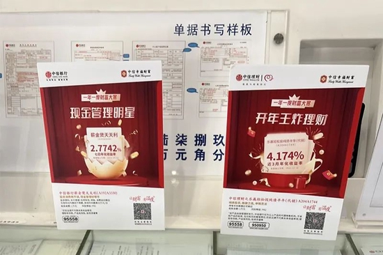 记者走访中发现,目前各家银行都在大力推销纯债基金、固收+理财产品。比如中信银行深圳南山某支行为了揽客,就打出了“开年王炸理财”的抬头,其主推的理财产品为“乐盈轻松投纯债半年”,近3月年化收益率4.174%。