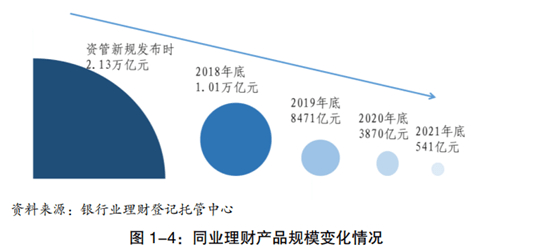 同时《机构投资家》发现,同业理财大幅减少。截至2021年底,同业理财降至541亿元,较资管新规发布前下降97.52%。