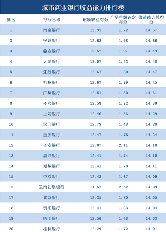 在城市商业银行方面,南京银行、宁波银行、徽商银行、天津银行、江苏银行位居前五。